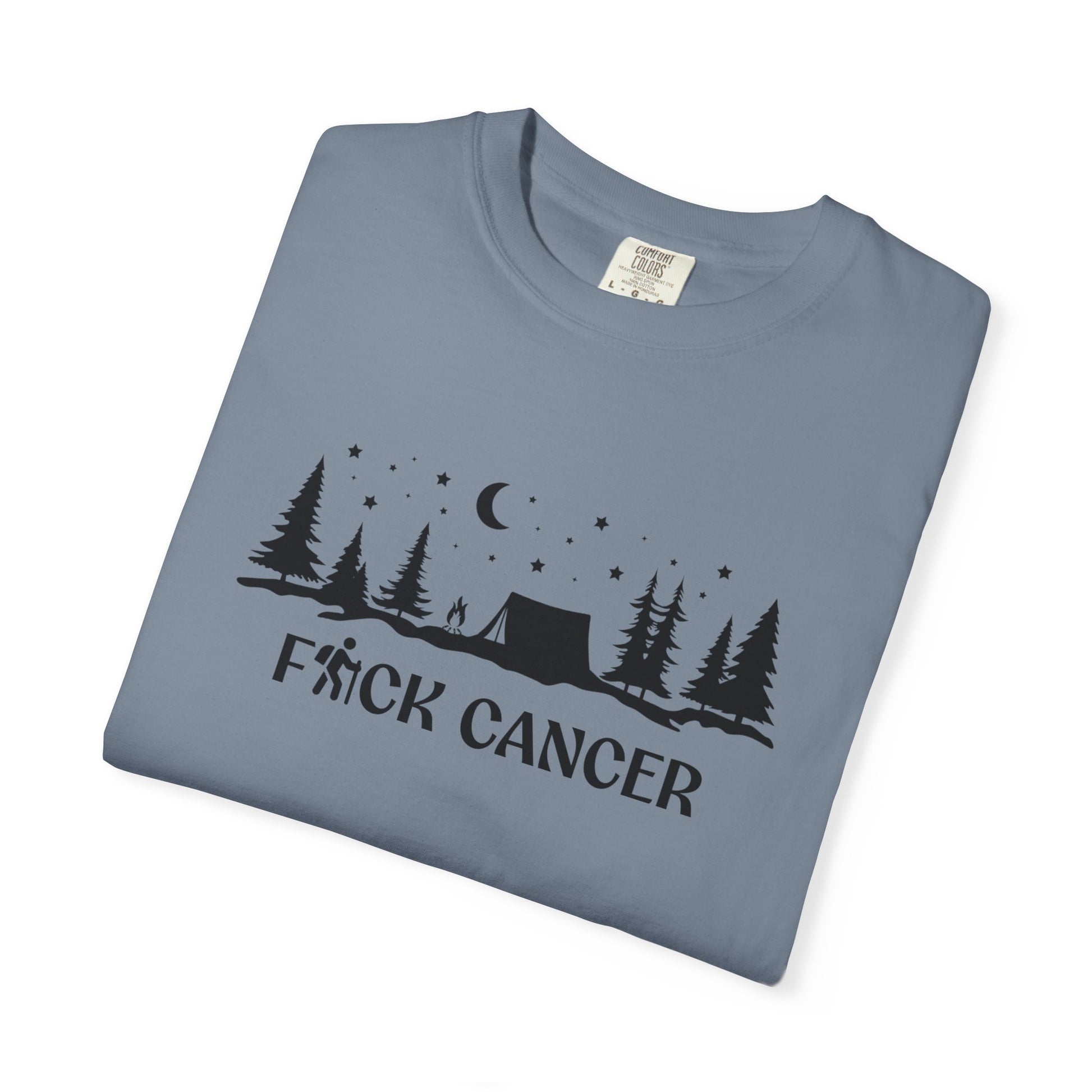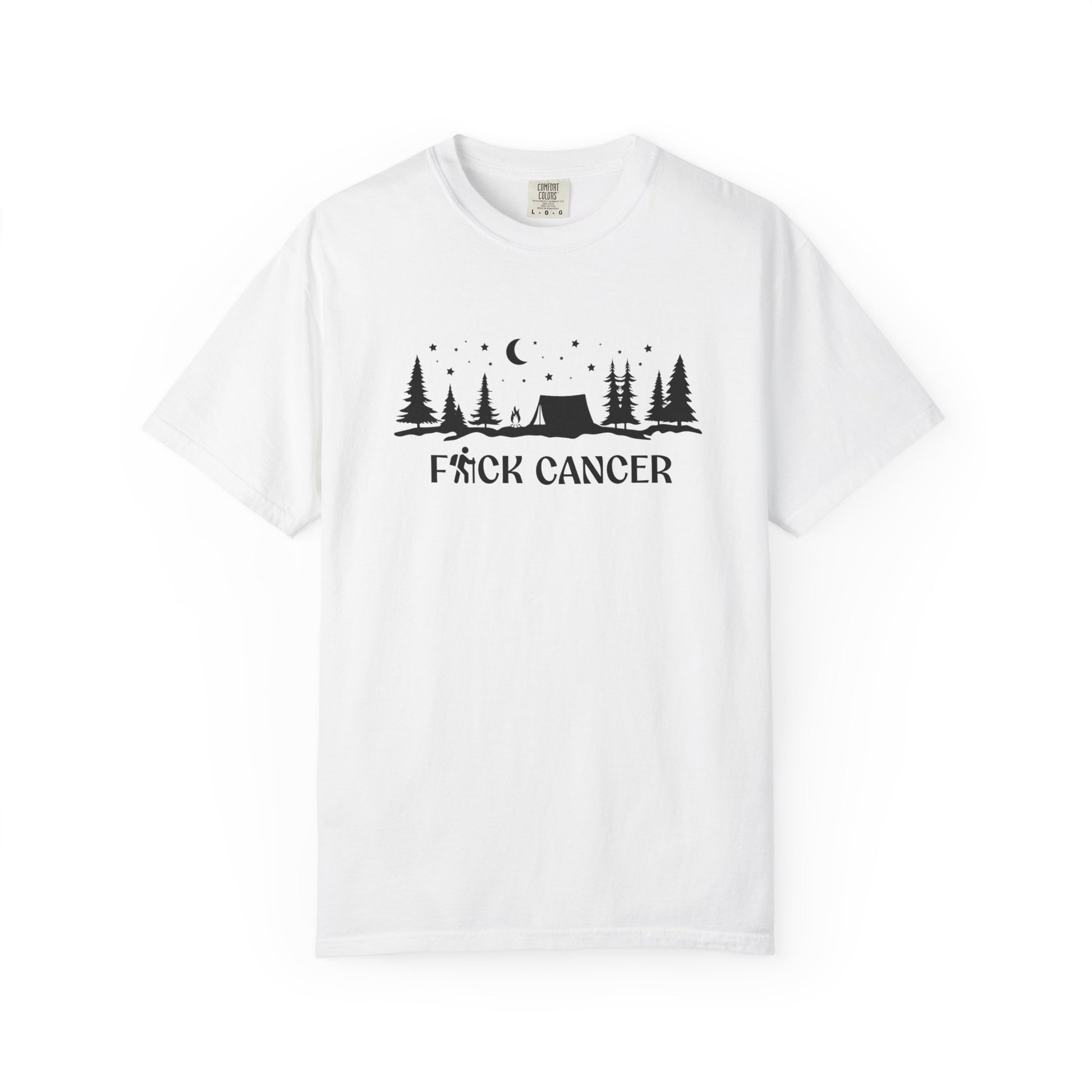 A bold and empowering unisex T-shirt with a mountain design and the message 'Fuck Cancer'. Perfect for those who want to make a statement and support cancer awareness. Ideal for fundraisers, cancer survivors, and advocates. Suitable for Cancer Awareness Month and Relay for Life events.
