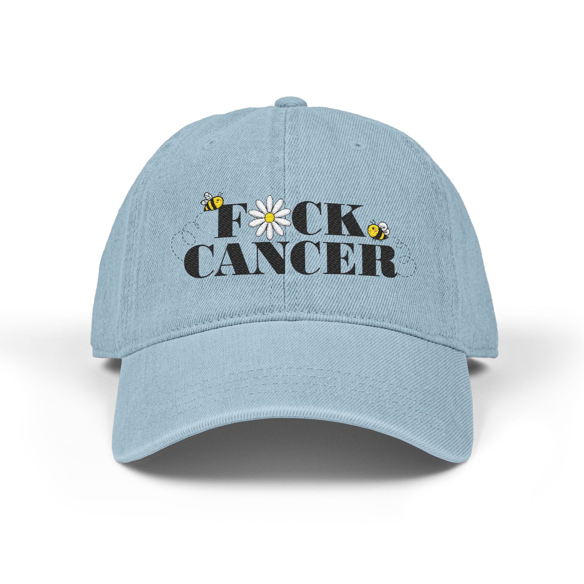 Embroidered Denim Hat with 'Fuck Cancer' Logo