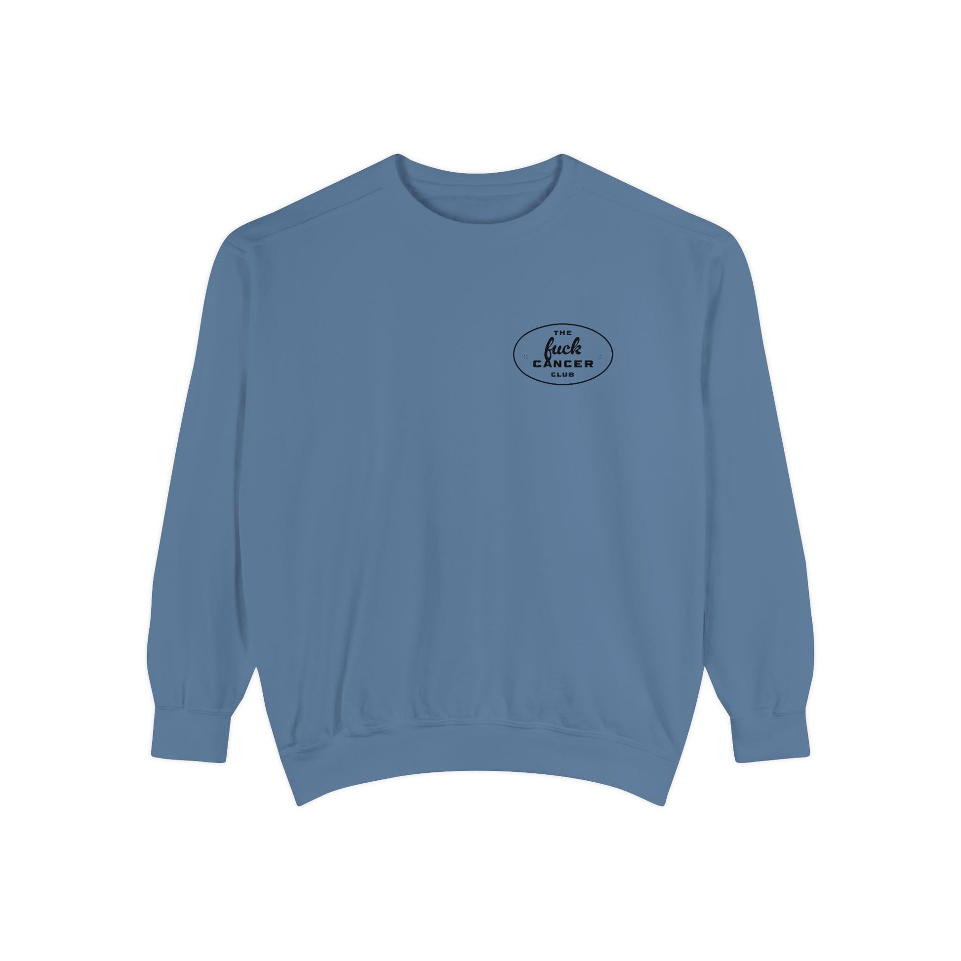 Join the 'fuck cancer club' with this unisex garment-dyed sweatshirt. The design exudes a sense of empowerment and strength, making it perfect for cancer survivors or those supporting loved ones through their journey. Ideal for wearing during cancer awareness events, fundraising walks, or simply as a statement piece in everyday life.